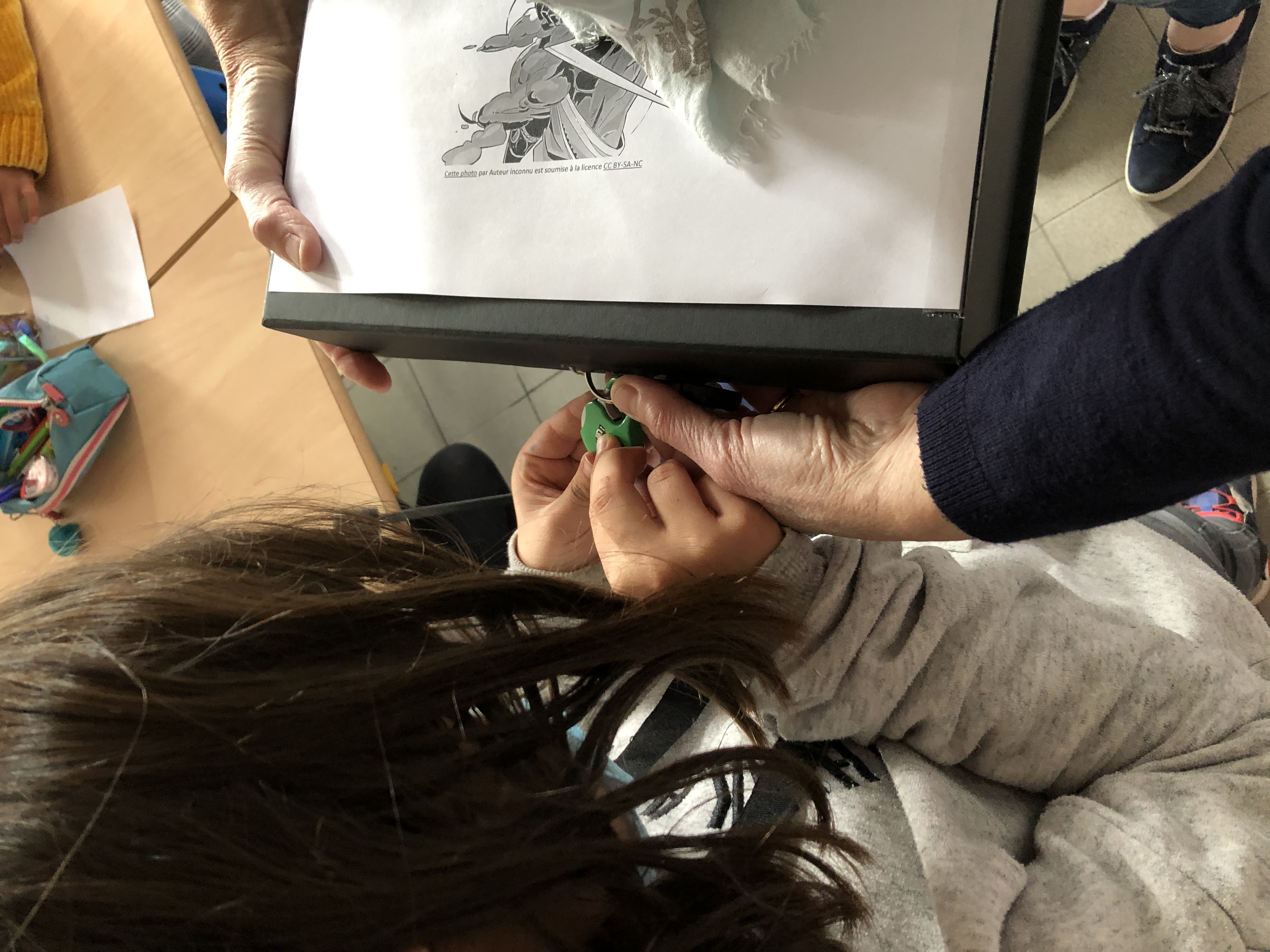 Chaque groupe a dû résoudre des enigmes, puis reconstituer un tangram afin de deviner le code d'un cadenas qui ouvrait le Trésor de Zeus...